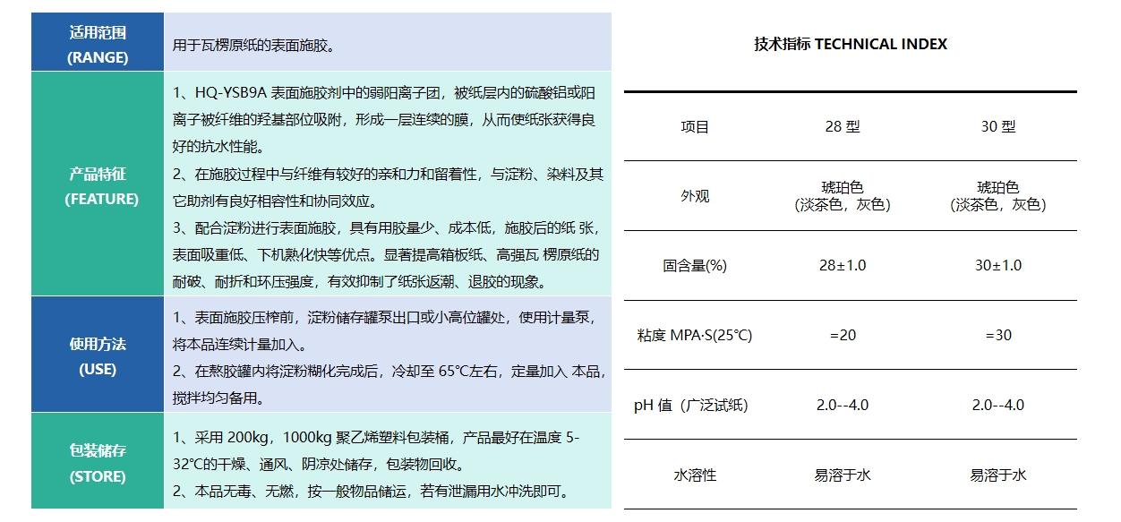 HQ-G6887 表面施膠劑,是羊乙烯-丙烯酸醋類的共聚合成的一種弱陽離子表面施膠劑,能與淀粉有機溶合,賦予淀粉涂層良好的交聯強度和疏水性能。無熟化期,可100%留著于紙上,集中發揮其施膠效果,獲得穩定的抗水性能,且高強瓦楞紙不回潮,環壓強度穩定不變。